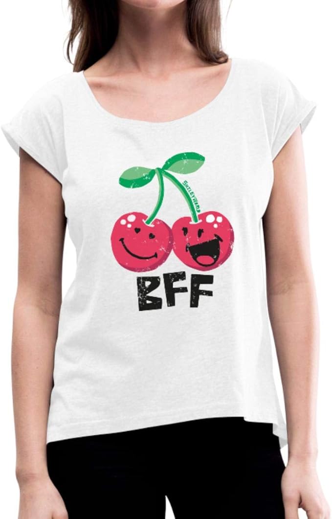 Smiley World Cerises Bff Amis T Shirt A Manches Retroussees Femme